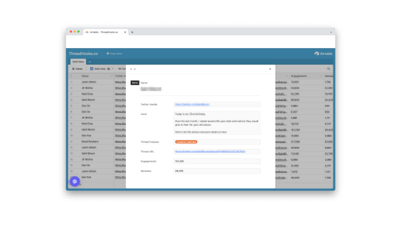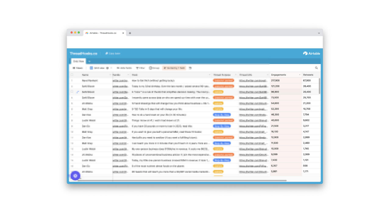 Our database is completely sortable by account, engagement, and retweets. No more searching for the perfect thread opener for hours.